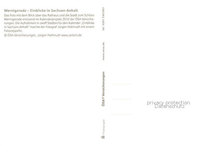 73708662 Wernigerode Harz Stadtpanorama mit Rathaus Schloss Aus Kalender Einblick in Sachsen-Anhalt Aufnahme aus Zeppelin postalisch nicht gelaufen Fliegeraufnahme Erhaltung siehe scans [FriedD77] KatCode: 11110015085370