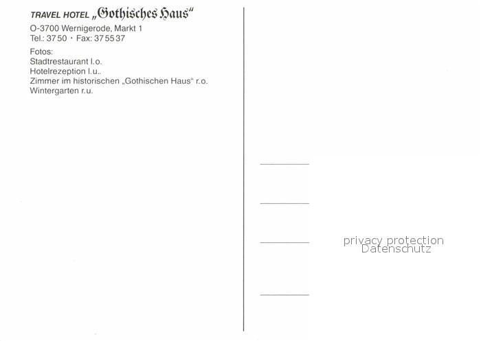 72677459 Wernigerode Harz Travel Hotel Gothisches Haus Restaurant Rezeption Zimmer Wintergarten postalisch nicht gelaufen Erhaltung siehe scans [FriedD77] KatCode: 11110015085370