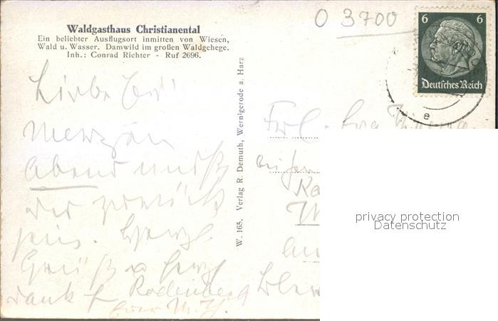 42417897 alte Postkarte Wernigerode Harz Waldgasthaus Christianental postalisch gelaufen Erhaltung siehe scans KatCode: 11110015085370