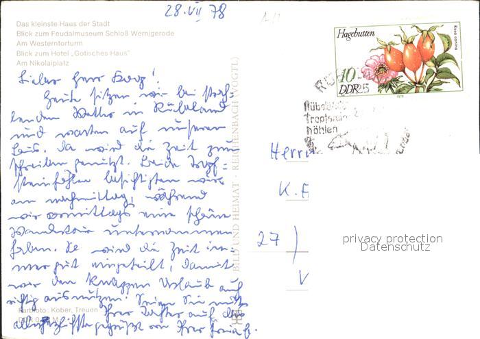 72304559 alte Postkarte Wernigerode Harz Westerntorturm Nikolaiplatz Schloss postalisch gelaufen Erhaltung siehe scans KatCode: 11110015085370