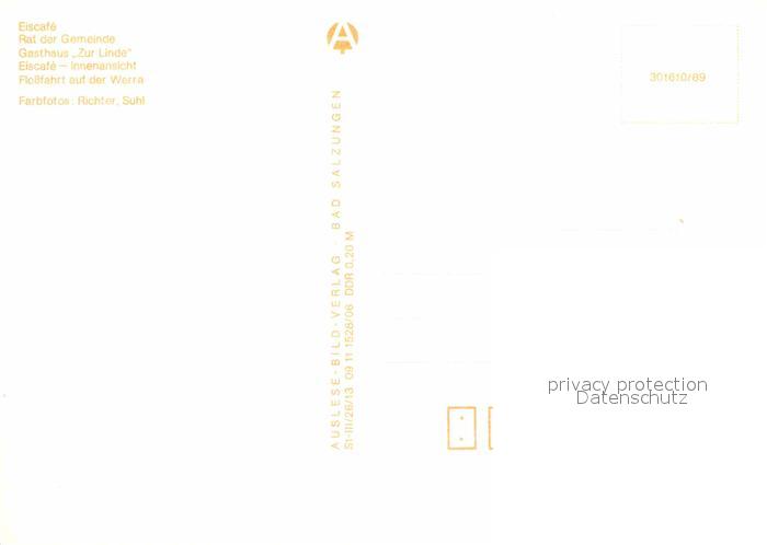 72667546 Wernshausen EisCafe Rat der Gemeinde Gasthaus zur Linde postalisch nicht gelaufen Erhaltung siehe scans [AndreD76] KatCode: 11110016066087