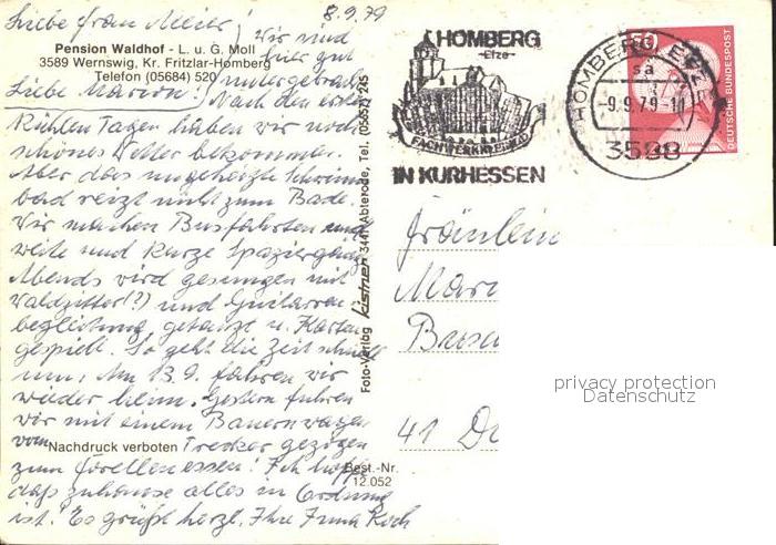 71931173 alte Postkarte Wernswig Pension Waldhof postalisch gelaufen Erhaltung siehe scans KatCode: 11110006634009