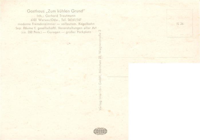 73887274 Wersau Odenwald Gasthaus Zum kuehlen Grund Gastraeume Terrasse postalisch nicht gelaufen Erhaltung siehe scans [FriedD77] KatCode: 11110006437003