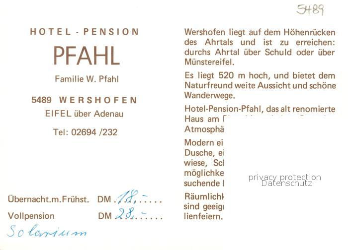 73086734 Wershofen Hotel Pfahl postalisch nicht gelaufen Keine Postkarte (siehe scan) Erhaltung siehe scans [NatalD47] KatCode: 11110007131082