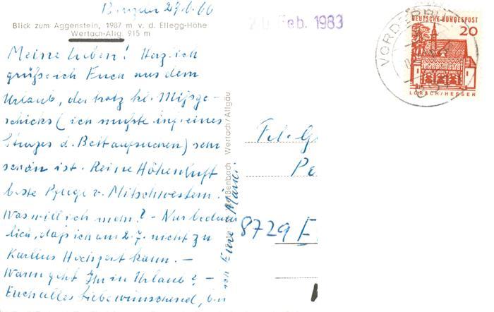 73948902 alte Postkarte Wertach Bayern Ellegg-Hoehe Blick zum Aggenstein postalisch gelaufen Erhaltung siehe scans [FriedD77] KatCode: 11110009780145