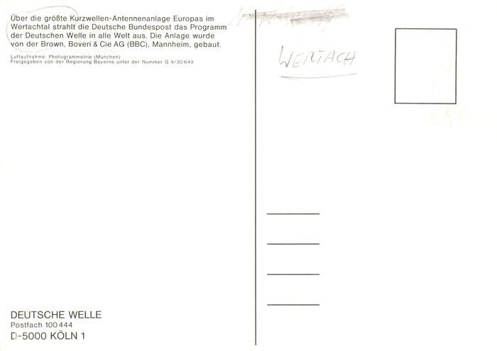 73880658 Wertach Bayern Groesste Kurzwellen Antennenanlage Europas im Wertachtal Fliegeraufnahme postalisch nicht gelaufen Erhaltung siehe scans [WerneD78] KatCode: 11110009780145