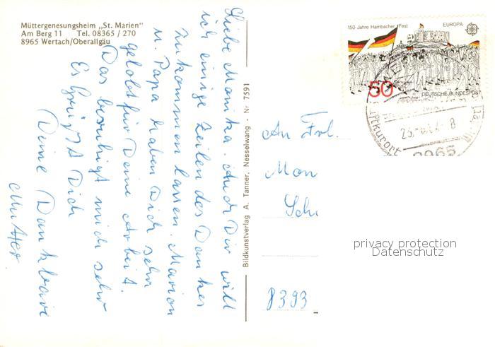 73874241 alte Postkarte Wertach Bayern Muettergenesungsheim St Marien Gastraeume Hallenbad postalisch gelaufen Erhaltung siehe scans [WerneD78] KatCode: 11110009780145