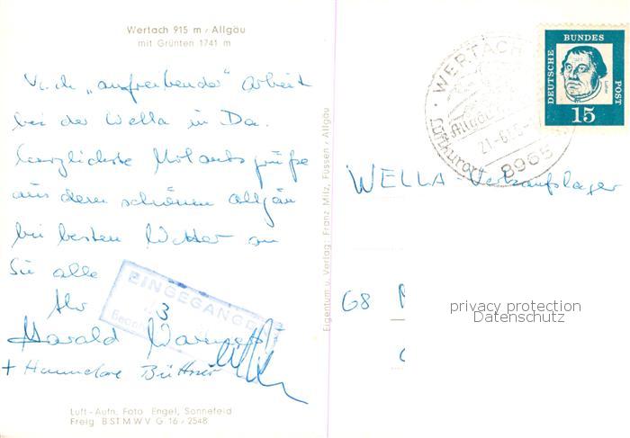 73853914 alte Postkarte Wertach Fliegeraufnahme mit Gruenten postalisch gelaufen Erhaltung siehe scans [WerneD78] KatCode: 11110009780145