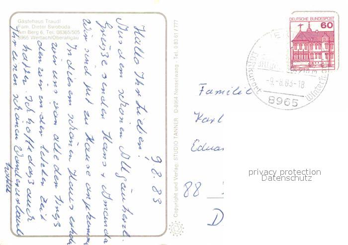 72673141 alte Postkarte Wertach Gaestehaus Traudl postalisch gelaufen Erhaltung siehe scans [AndreD76] KatCode: 11110009780145