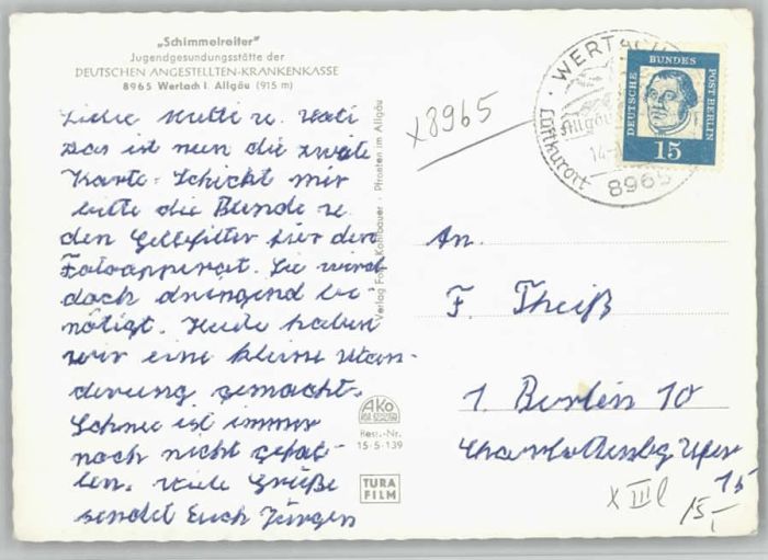 40246404 Wertach Jugendgesundungsstätte Schimmelreiter x 1965 KatCode 11110009780145