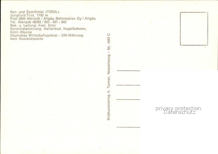72463052 Wertach Kur Sporthotel Tirol postalisch nicht gelaufen Erhaltung siehe scans KatCode: 11110009780145