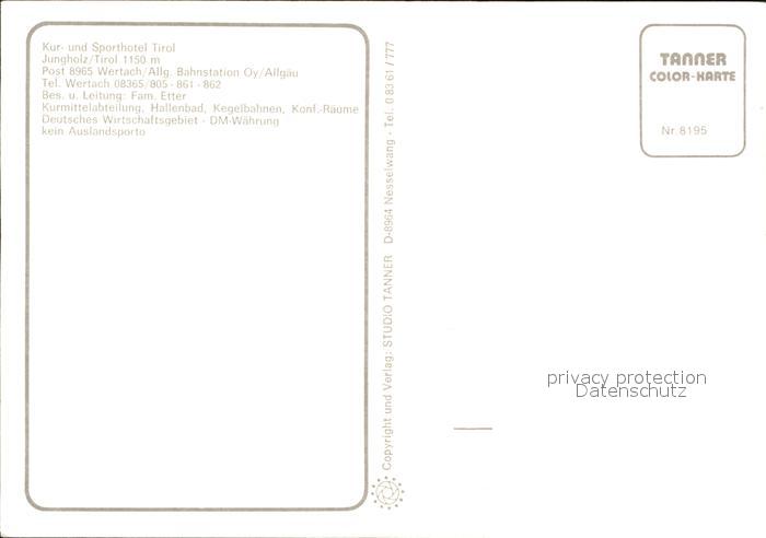 72398167 Wertach Kur- und Sporthotel Jungholz Speiseraum postalisch nicht gelaufen Erhaltung siehe scans KatCode: 11110009780145