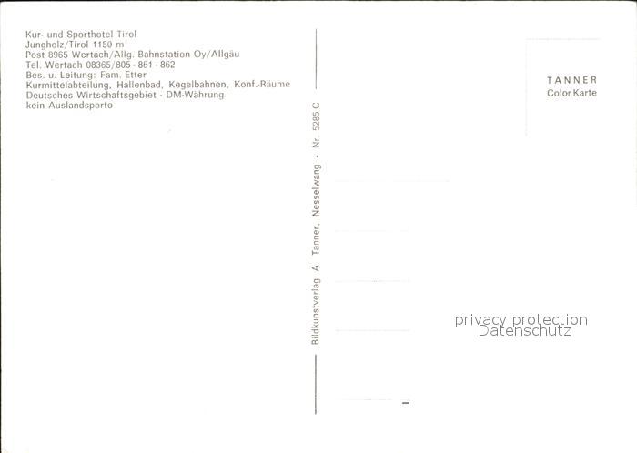 72398165 Wertach Kur- und Sporthotel Jungholz postalisch nicht gelaufen Erhaltung siehe scans KatCode: 11110009780145
