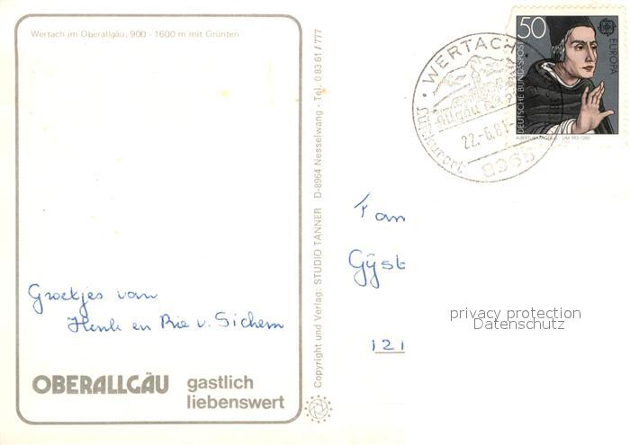 72939541 alte Postkarte Wertach mit Gruenten postalisch gelaufen Erhaltung siehe scans [WerneD78] KatCode: 11110009780145