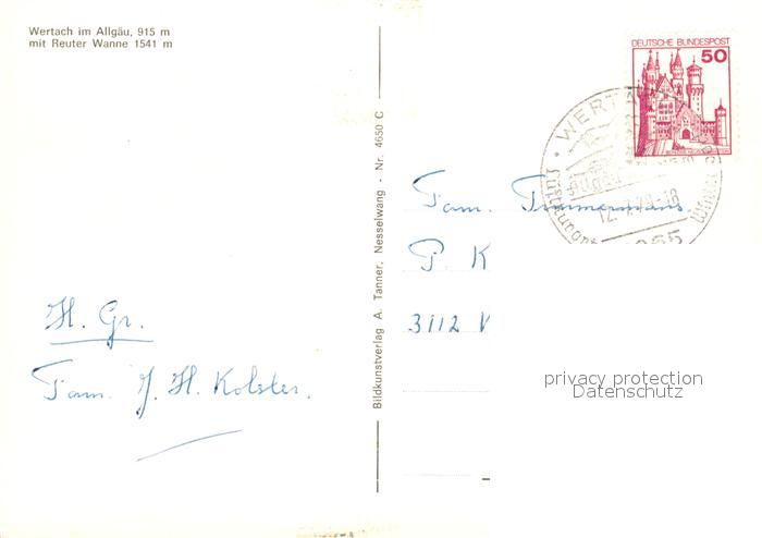 73306249 alte Postkarte Wertach mit Reuter Wanne und Kirche postalisch gelaufen Erhaltung siehe scans [WerneD78] KatCode: 11110009780145