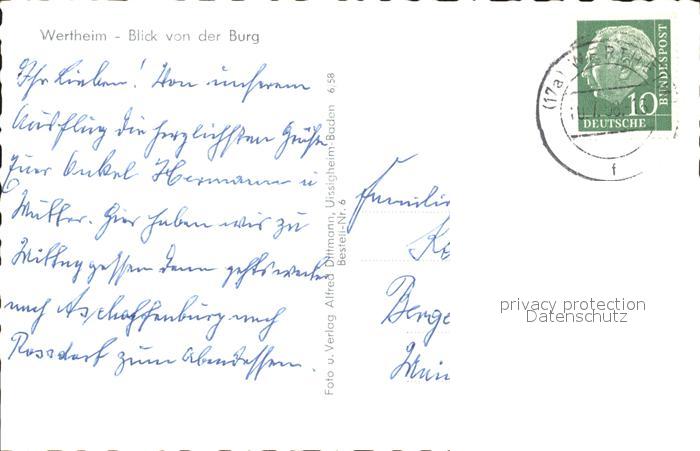 72093380 alte Postkarte Wertheim Main Blick von der Burg postalisch gelaufen Erhaltung siehe scans KatCode: 11110008128131