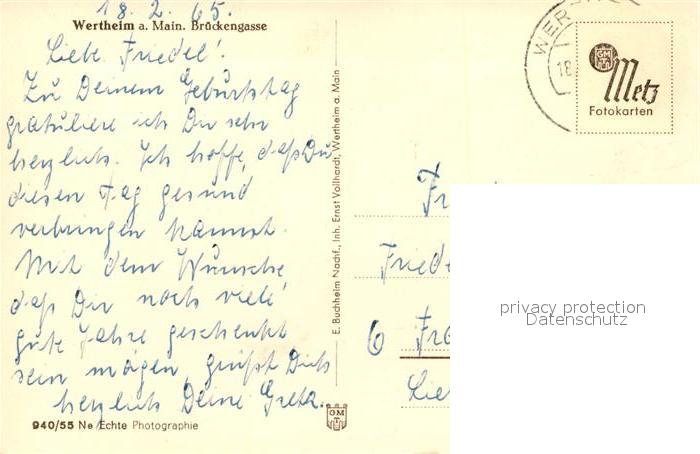 33152397 alte Postkarte Wertheim Main Brueckengasse postalisch gelaufen Erhaltung siehe scans [KathaD81] KatCode: 11110008128131