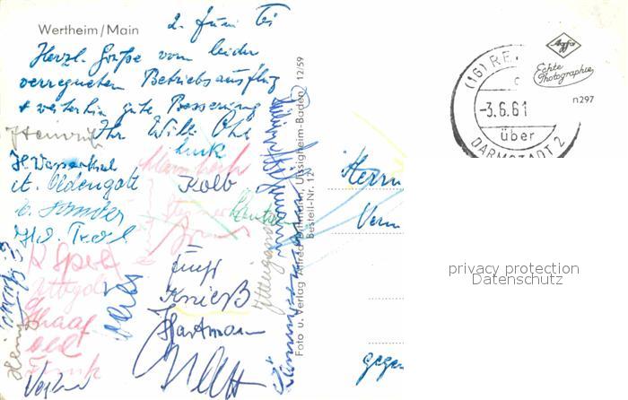 72791513 alte Postkarte Wertheim Main Burg Rathaus Panorama postalisch gelaufen Erhaltung siehe scans [AndreD76] KatCode: 11110008128131