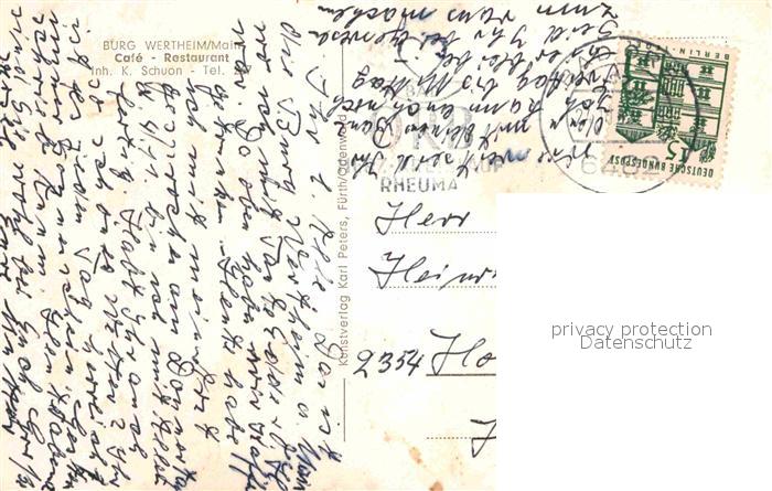 72697356 alte Postkarte Wertheim Main Burg Wertheim Cafe Restaurant postalisch gelaufen Erhaltung siehe scans [WerneD78] KatCode: 11110008128131