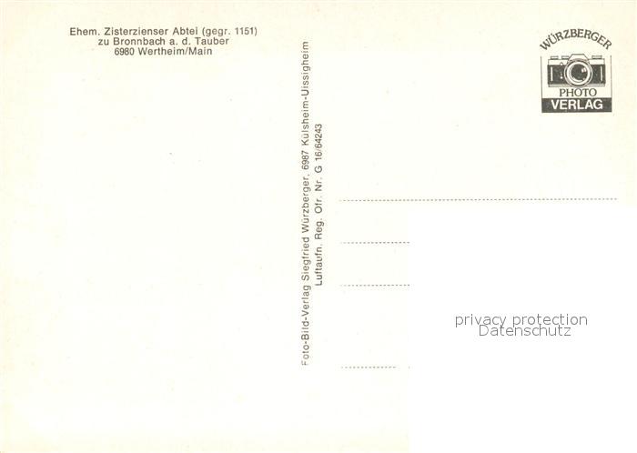 73685769 Wertheim Main Ehem Zisterzienser Abtei zu Bronnbach Fliegeraufnahme postalisch nicht gelaufen Erhaltung siehe scans [WerneD78] KatCode: 11110008128131