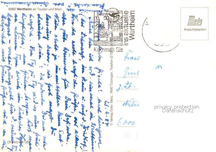73123110 alte Postkarte Wertheim Main Fliegeraufnahme postalisch gelaufen Erhaltung siehe scans [KathaD81] KatCode: 11110008128131