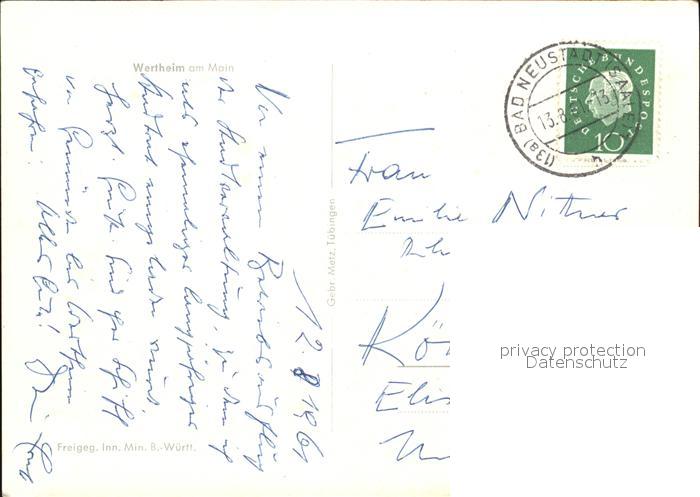 72538618 alte Postkarte Wertheim Main Fliegeraufnahme postalisch gelaufen Erhaltung siehe scans [AndreD76 kt119box] KatCode: 11110008128131