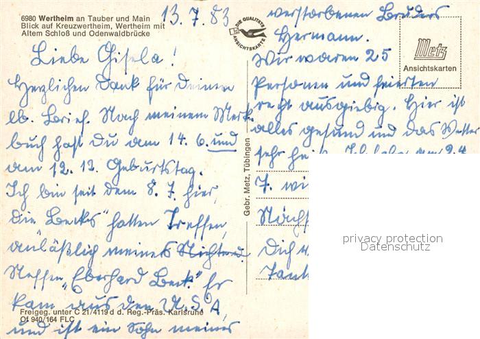 73123106 Wertheim Main Fliegeraufnahme Kreuzwertheim Altes Schloss Odenwaldbruecke postalisch nicht gelaufen Erhaltung siehe scans [KathaD81] KatCode: 11110008128131