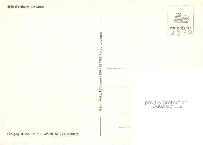 72887252 Wertheim Main Fliegeraufnahme Mainpartie postalisch nicht gelaufen Erhaltung siehe scans [LiesaD40] KatCode: 11110008128131