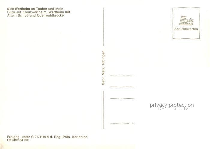 73779417 Wertheim Main Fliegeraufnahme mit Kreuzwertheim Altem Schloss und Odenwaldbruecke postalisch nicht gelaufen Erhaltung siehe scans [WerneD78] KatCode: 11110008128131