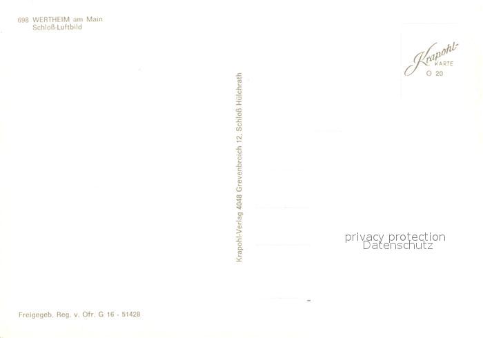 73727710 Wertheim Main Fliegeraufnahme Schloss postalisch nicht gelaufen Erhaltung siehe scans [LiesaD40] KatCode: 11110008128131