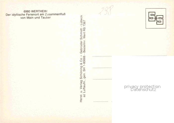 72792331 Wertheim Main Fliegeraufnahme Zusammenfluss von Main und Tauber postalisch nicht gelaufen Erhaltung siehe scans [LiesaD40] KatCode: 11110008128131