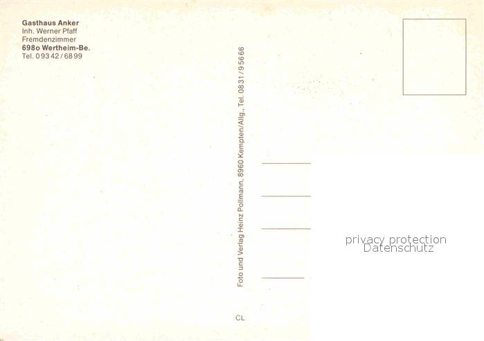 72672994 Wertheim Main Gasthaus Anker postalisch nicht gelaufen Erhaltung siehe scans [AndreD76] KatCode: 11110008128131