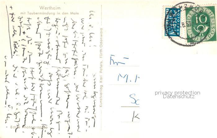 73762834 alte Postkarte Wertheim Main Gesamtansicht m. Taubermuendung i. d. Main postalisch gelaufen Erhaltung siehe scans [LiesaD40] KatCode: 11110008128131