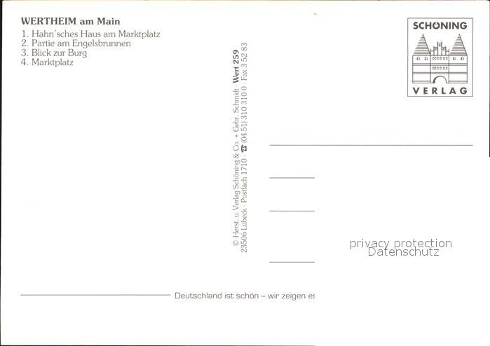 72566733 Wertheim Main Hahnsches Haus Engelsbrunnen Burg Marktplatz postalisch nicht gelaufen Erhaltung siehe scans [LiesaD40] KatCode: 11110008128131