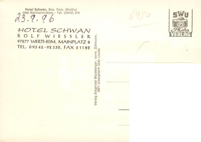 73887488 Wertheim Main Hotel Schwan postalisch nicht gelaufen Erhaltung siehe scans [FriedD77] KatCode: 11110008128131