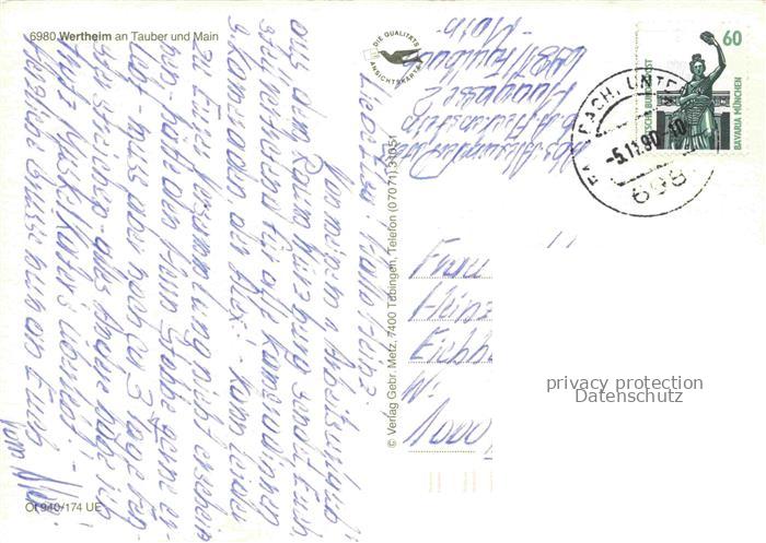 74095567 alte Postkarte Wertheim Main Luftbild postalisch gelaufen Erhaltung siehe scans [IrynaD87] KatCode: 11110008128131