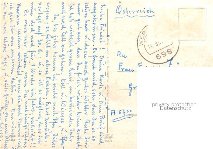 73122233 alte Postkarte Wertheim Main Markt postalisch gelaufen Erhaltung siehe scans [KathaD81] KatCode: 11110008128131