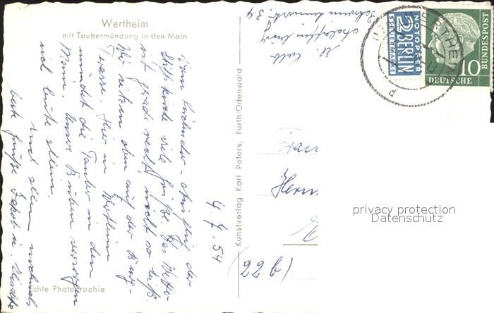 72198038 alte Postkarte Wertheim Main mit Taubermuendung postalisch gelaufen Erhaltung siehe scans KatCode: 11110008128131