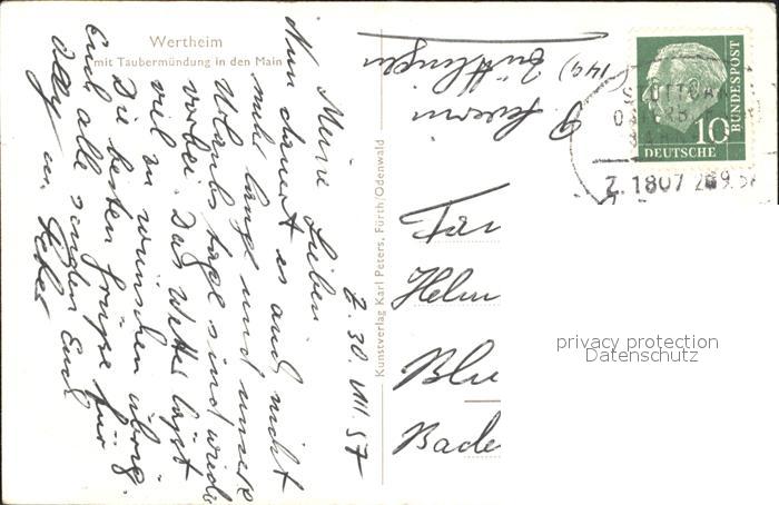 72216829 alte Postkarte Wertheim Main mit Taubermuendung Fliegeraufnahme postalisch gelaufen Erhaltung siehe scans KatCode: 11110008128131