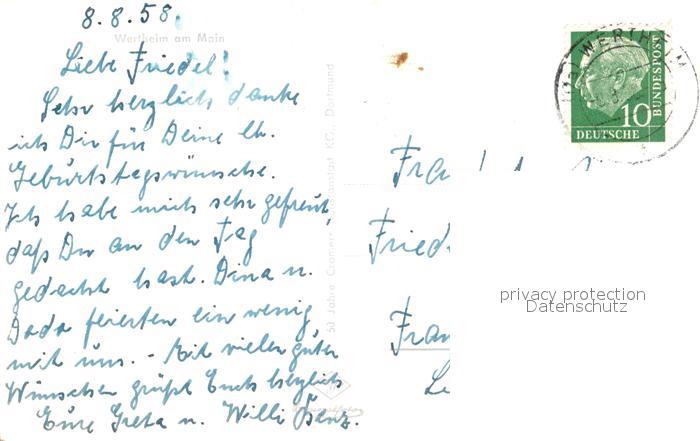 73121540 alte Postkarte Wertheim Main Panorama postalisch gelaufen Erhaltung siehe scans [KathaD81] KatCode: 11110008128131
