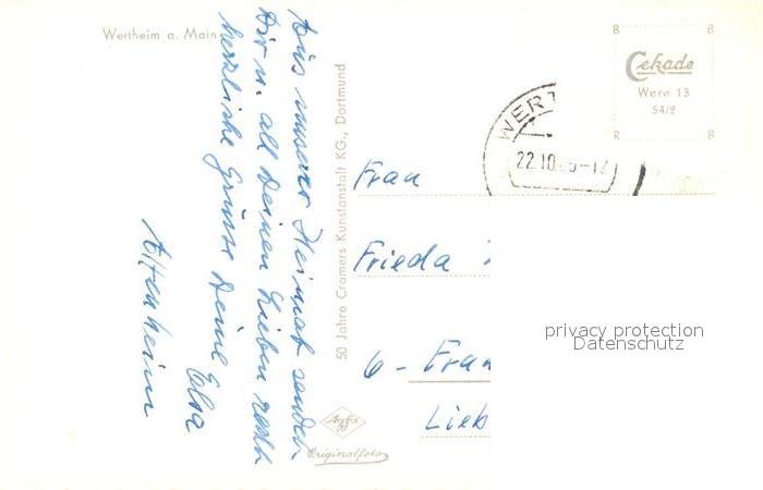 73121538 alte Postkarte Wertheim Main Panorama postalisch gelaufen Erhaltung siehe scans [KathaD81] KatCode: 11110008128131