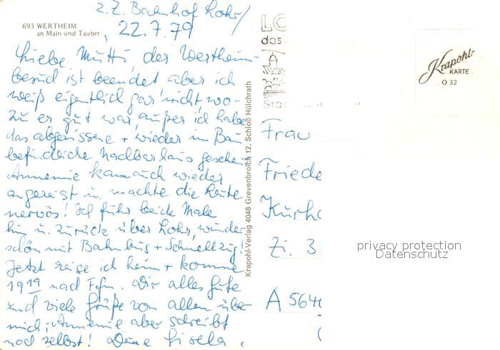 73123041 alte Postkarte Wertheim Main Panorama Bootsanlegestelle postalisch gelaufen Erhaltung siehe scans [KathaD81] KatCode: 11110008128131