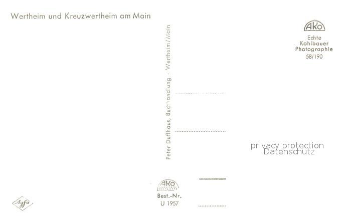 73248906 Wertheim Main Panorama mit Kreuzwertheim postalisch nicht gelaufen Erhaltung siehe scans [FriedD77] KatCode: 11110008128131
