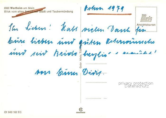 73122261 Wertheim Main Panorama Taubermuendung postalisch nicht gelaufen Erhaltung siehe scans [KathaD81] KatCode: 11110008128131