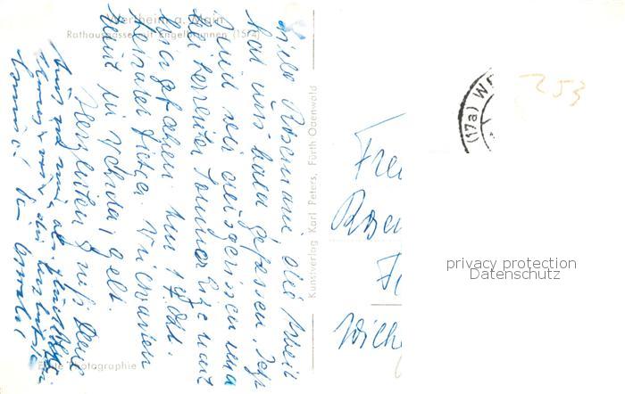 73804248 alte Postkarte Wertheim Main Rathausgasse mit Engelbrunnen postalisch gelaufen Erhaltung siehe scans [WerneD78] KatCode: 11110008128131