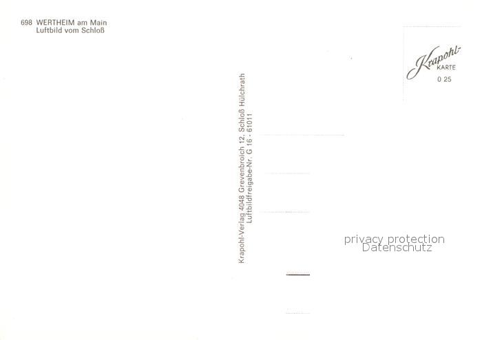 73010225 Wertheim Main Schloss Fliegeraufnahme postalisch nicht gelaufen Erhaltung siehe scans [WerneD78] KatCode: 11110008128131