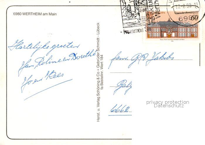 73059168 alte Postkarte Wertheim Main Schloss Maindampfer postalisch gelaufen Erhaltung siehe scans [WerneD78] KatCode: 11110008128131