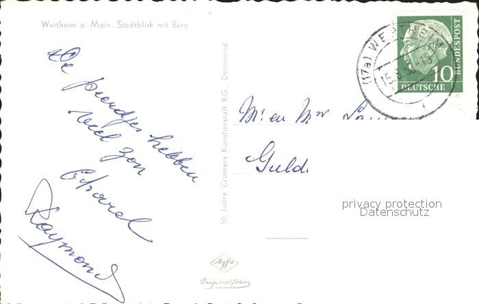 72089457 alte Postkarte Wertheim Main Stadtblick mit Burg postalisch gelaufen Erhaltung siehe scans KatCode: 11110008128131