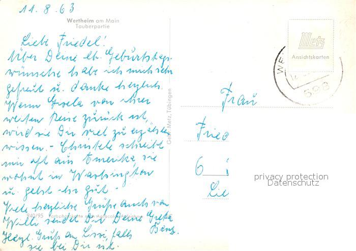 73122310 alte Postkarte Wertheim Main Tauberpartie postalisch gelaufen Erhaltung siehe scans [KathaD81] KatCode: 11110008128131