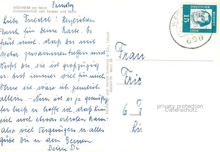 73122309 alte Postkarte Wertheim Main Zusammenfluss Tauber Main postalisch gelaufen Erhaltung siehe scans [KathaD81] KatCode: 11110008128131
